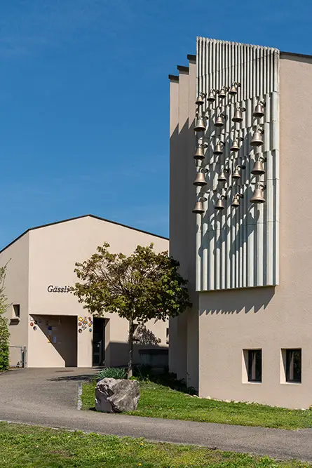 Carillon an der Fassade des ref. Kirchgemeindehauses In Magden